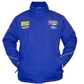 | Oryginalna kurtka zimowa zespołu BP Ford WRT z systemem przepuszczającym powietrze. Kurtka wodoodporna, posiada cztery zewnętrzne kieszenie wyłożone miłym w dotyku polarem oraz dwie wewnętrzne - jedna na dokumenty (zapinana na zamek błyskawiczny), druga na komórkę (zapinana na rzep). Odpinany kołnierz kryjący kaptur, podobnie jak kieszenie, wyłożony został polarem od strony wewnętrznej. Produkt ozdobiony został czterema haftami sponsorów zespołu umieszczonymi na piersiach, logiem BP na prawym rękawku oraz dużym logo zespołu na plecach. Ciekawostką jest, że zamki błyskawiczne zostały ozdobione zostały logiem oficjalnego tunera Forda - firmy M-Sport. Właściwości: • Wymiary własne::