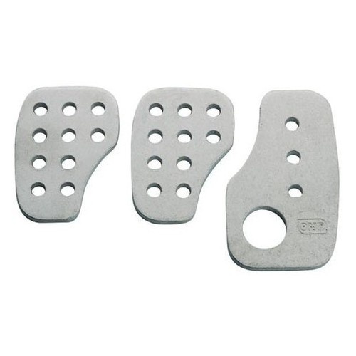 | Uniwersalne nakładki na pedały OMP. Nakładki sportowe, przeznaczone do rajdów, w zestawie ze śrubami montażowymi. Grubość nakładek 3mm. Wymiary: - pedał gazu: szerokość (dół) - 6 cm, szerokość (góra) - 4 cm, wysokość - 10,5 cm - pedał hamulca / sprzęgła: szerokość (dół) - 3,5 cm, szerokość (góra) - 5,5 cm, wysokość - 8 cm |