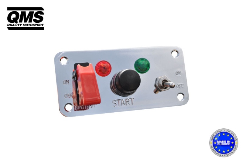 | Panel startowy QMS. Panel składa się z dwóch diód informacyjnych, przycisku startowego oraz dwóch przełączników on / off. Podstawa wykonana z aluminium. Właściwości: • Wymiary:: szerokość: 14 cm wysokość: 6,5 cm |