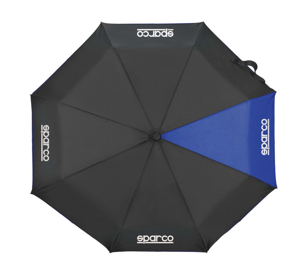 | Parasol przeciwdeszczowy z logo Sparco. Posiada wbudowaną w rączkę latarkę. Średnica rozłożonego parasola to 96 cm. |