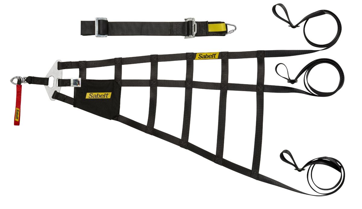 | Profesjonalna siatka ochronna na okno Sabelt zgodna z homologacją FIA 8863-2013. Siatka przyczepiana do elementów klatki za pomocą regulowanych pasków, posiada dodatkowo zatrzask dla szybkiego uwolnienia się kierowcy. Właściwości: • Homologacja:: FIA |