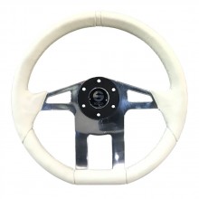 | Sportowa okrągła kierownica o zwieńczeniu wykonanym ze skóry w kolorze białym. Idealna do łodzi motorowych oraz wnętrz retro. Kierownica wykonana we Włoszech. Właściwości: • Klakson:: tak • Jaką kierownicę wybrać?: Przeczytaj poradnik RallyShop.pl • Liczba ramion:: 3 • Kształt:: okrągły • Średnica:: 350 mm • Materiał:: skóra |