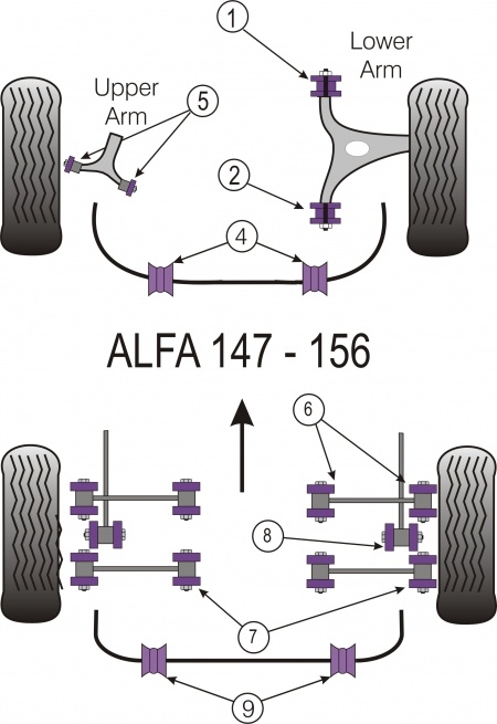 Sklepy » Akcesoria rajdowe » Układ zawieszenia » tuleje poliuretanowe » Tuleje poliuretanowe Powerflex: Alfa Romeo 147 / 156 / GT