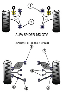 Sklepy » Akcesoria rajdowe » Układ zawieszenia » tuleje poliuretanowe » Tuleje poliuretanowe Powerflex: Alfa Romeo Spider 2000 TS 16V GTV / V6