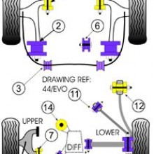 Opis produktu: tuleje poliuretanowe - Tuleje poliuretanowe Powerflex: Mitsubishi Lancer EVO 4 / 5 / 6 / 7