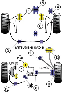 Opis produktu: tuleje poliuretanowe - Tuleje poliuretanowe Powerflex: Mitsubishi Lancer EVO 8 / 9