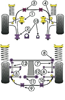 Sklepy » Akcesoria rajdowe » Układ zawieszenia » tuleje poliuretanowe » Tuleje poliuretanowe Powerflex: Subaru Impreza GD / GG Turbo / WRX / STI