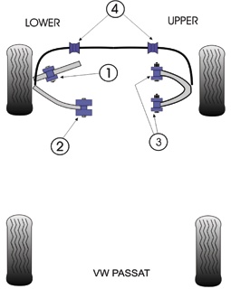 Opis produktu: tuleje poliuretanowe - Tuleje poliuretanowe Powerflex: VW Passat B5